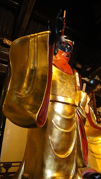 城隍廟內最後一進殿為城隍殿。 城隍殿兩側懸有對聯以讚揚城隍神公正無私“禍福分明此地難通線索,善惡立判須知天道無私”,上懸匾額“威靈顯赫”。 殿內另有一幅贊神對聯“天道無私做善降祥預知吉凶禍福,神明有應修功解厄分辨邪正忠奸”橫批“燮理陰陽”。 城隍殿中央供奉上海縣城隍神紅臉木雕像,正襟危坐。 城隍殿內仿照明代縣衙公堂陳設,儀仗森嚴。(資料來源:上海城隍廟官網)