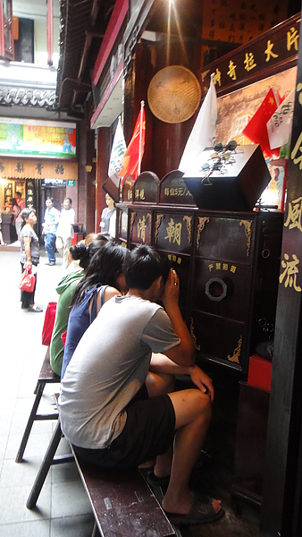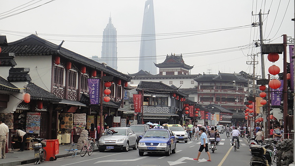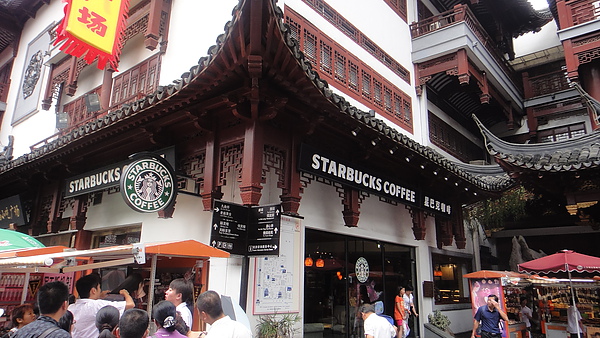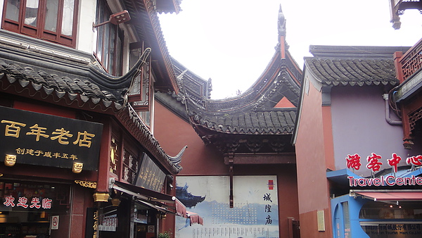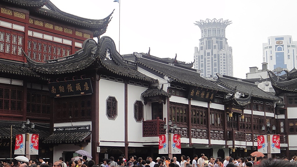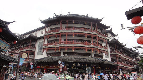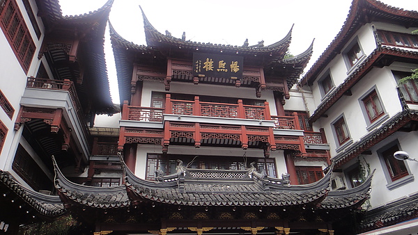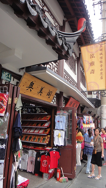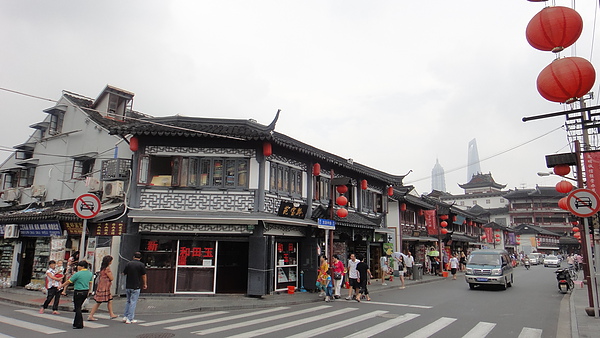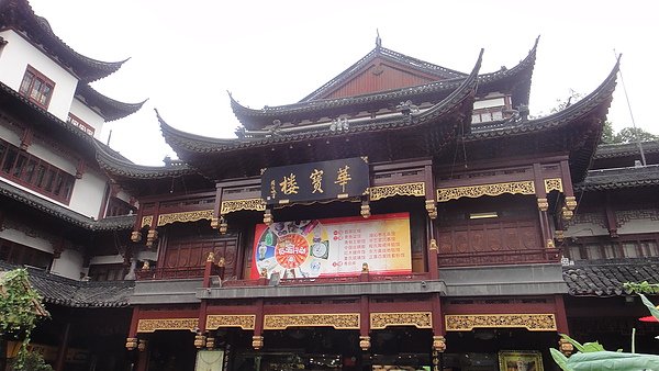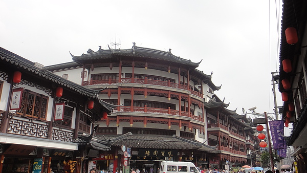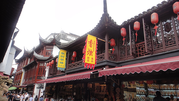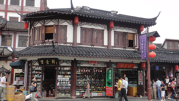 豫園周邊商店多有古味,還有懸掛舊式旗幟的茶樓,彷彿古裝電影裡面的場景