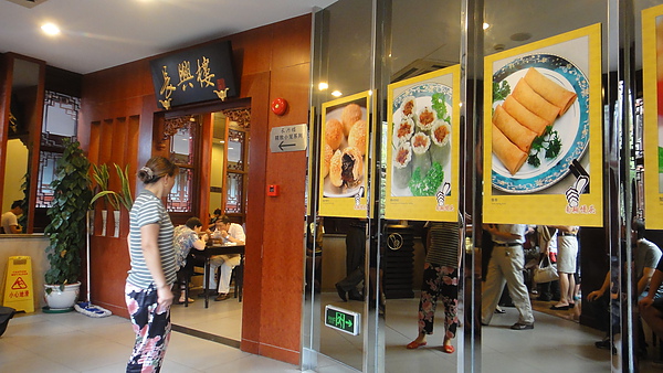 南翔饅頭店2F-長興樓,這家店1F是外帶區,可以看到很多人捧著一盒饅頭(湯包)吃,2F3F則是內用區,差別是最低消費的不同。佳&良在這兒排隊等了一會,聽旁人的口音很像台灣人,一問才知道原來是來自新竹科學園區的工程師們,聽他們說這趟來上海很匆促,也只打算進世博園區一天(佳&良準備進園區三天),且還是衝著台灣館而來,而且ㄚ良從他們那兒聽來一個情報,原來台灣館最近新增了網路三天前預約的管道,不過每日只有200個名額