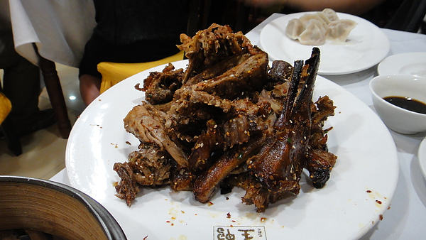 我們點了烤鴨三吃(皮、肉片、骨頭)、生煎包、水餃。