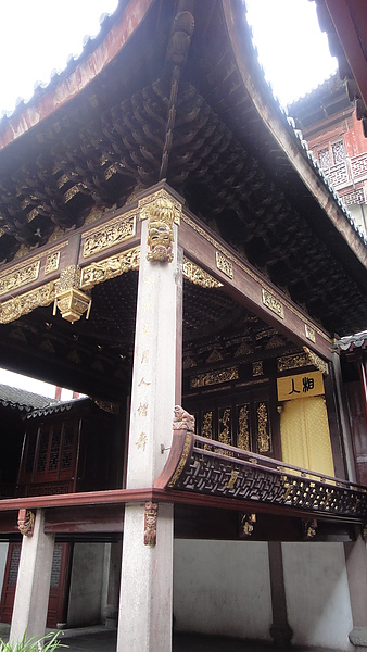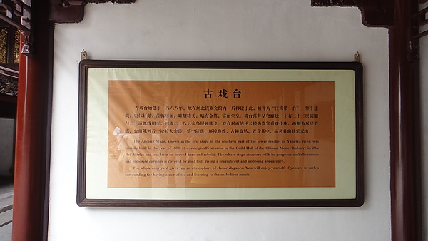 位於內園之南,建於清末,原在閘北上海北錢業公所內,1974年移建於此,經過修繕和增建於1988年9月對外開放。 戲台正面獅子、鳳凰、雙龍戲珠、戲文人物等木雕圖案,造型優美,栩栩如生。 頂部藻井呈穹窿狀,上有22層圈和20道弧線相交,四周28隻金鳥展翅欲飛,中間是一面圓形明鏡。 藻井不僅裝飾華麗,而且符合聲學原理,即使沒有擴音設備,也能取得良好音響效果。 戲台兩側石柱上鐫有對聯:“天增歲月人增壽,雲想衣裳花想容”,書法挺秀遒勁,為崑曲藝術大師俞振飛手筆。 戲台對面設貴賓嘉座,均為清代太師椅和茶几;兩邊有雙層看廊,安放著仿古紅木靠椅和條桌,共有200個座位。 環境典雅,古趣盎然。(資料來源:百度百科)