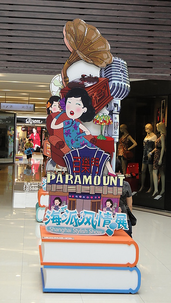 豫城時尚廣場內有可愛造型的廣告看板,有老上海的味道