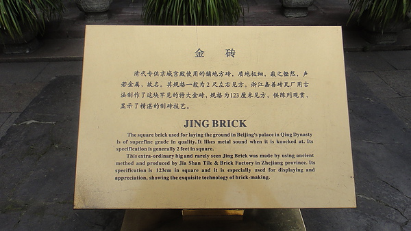 古戲台前放了一塊名為金磚的大石塊,是清代用於舖地的方磚。哇舖地板用這麼厚實的磚喔!? 真可謂不惜成本!