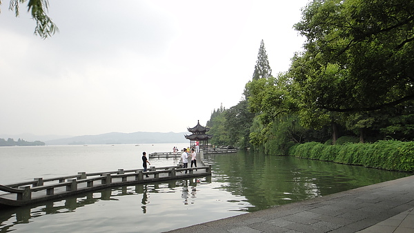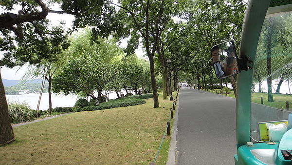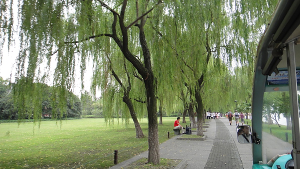 離開雷峰塔景區再度搭乘電動遊湖車回到蘇堤,可見釣客正在堤邊垂釣,開車導覽的師傅說這些人如果不是釣魚協會的人就是”特殊”人士,因為不是什麼人都可以在這兒釣魚的