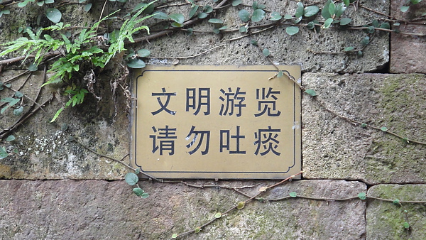 牆上特別貼有「文明遊覽 請勿吐痰」的告示,哈! 真有趣!