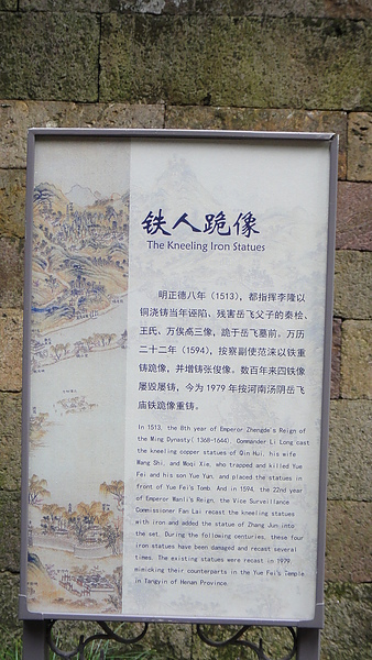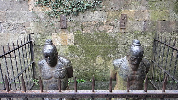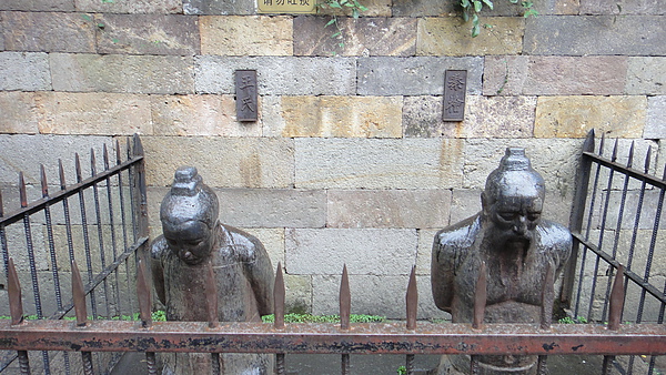 陷害岳飛將軍的秦檜夫婦跪像,他們就跪在岳飛將軍的墓前(據說是衣冠塚)