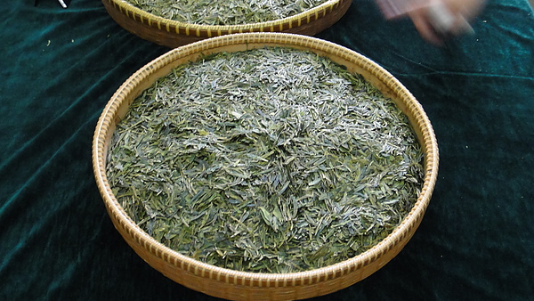 這就是龍井茶葉,聞起來挺香的,茶葉呈扁平狀,明顯與台灣茶的一芯二葉不同