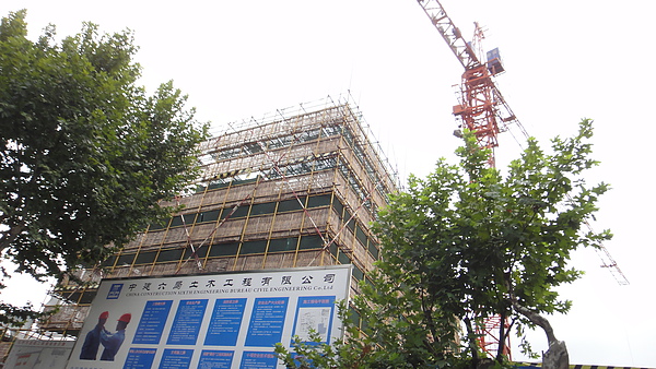 回到街上路過一建築工地,發現他們竟然用竹編護網,與台灣普遍用的PE防塵網、鋼管鷹架不同,很特別(職業病又犯了…)