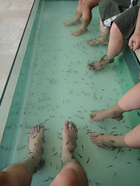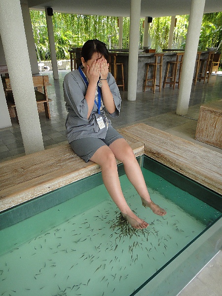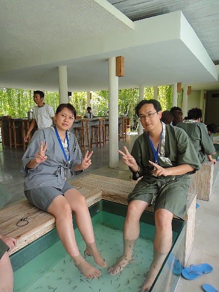 哇 腳才剛下池,一群魚馬上蜂擁而至,感覺真的很癢,有點小恐怖,不過一會兒就習慣了