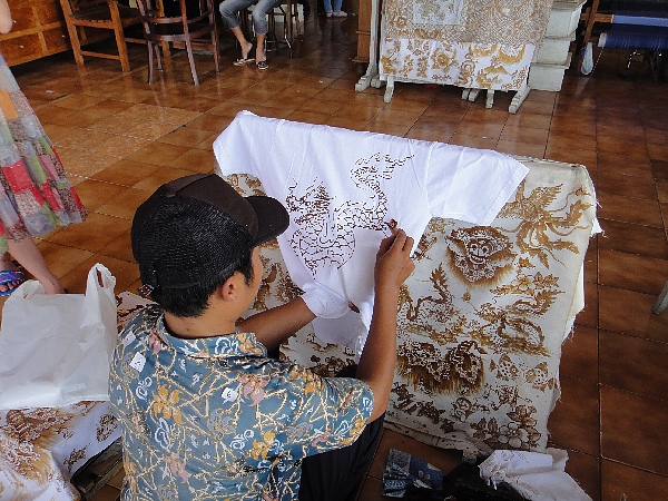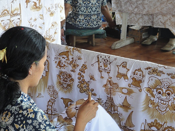 在峇迪蠟染村可以參觀當地著名的手工蠟染,也可以選擇花點小錢將喜歡的圖案畫在自己的衣物上面喔!