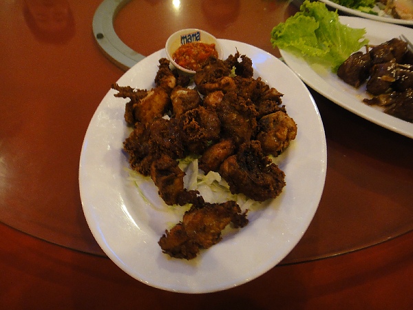 別看這盤黑黑乾乾的,其實它是雞塊,吃起來有點像是頂呱呱炸雞的感覺,不難吃