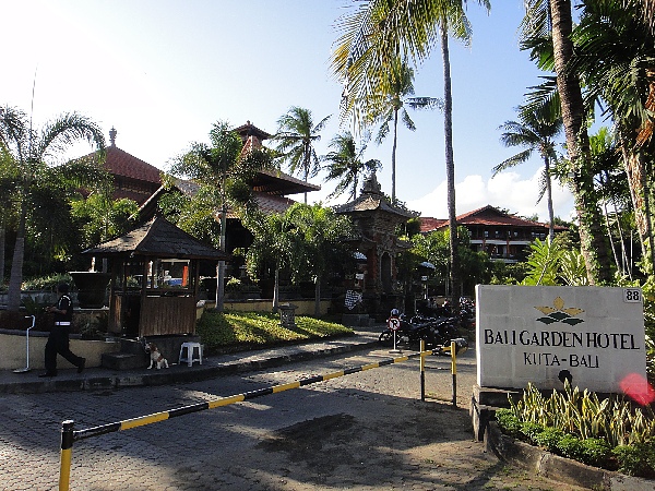 在峇里島,很多大型飯店前都會設置安全閘門,車子一抵達時會先被保全人員攔下,經過簡單的檢查後(通常時保全人員會拿鏡子很快地看一看車底,很少像凱悅飯店這樣,還設金屬探測器安全門,且還有行李X光台),才會打開安全閘門放行,這些安全措施大概都是因為峇里島爆炸案的關係吧。