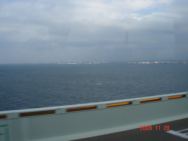 因為大阪關西機場是填海造地的海上機場,所以機場聯外道路的兩旁盡是大海(其實是大阪灣)