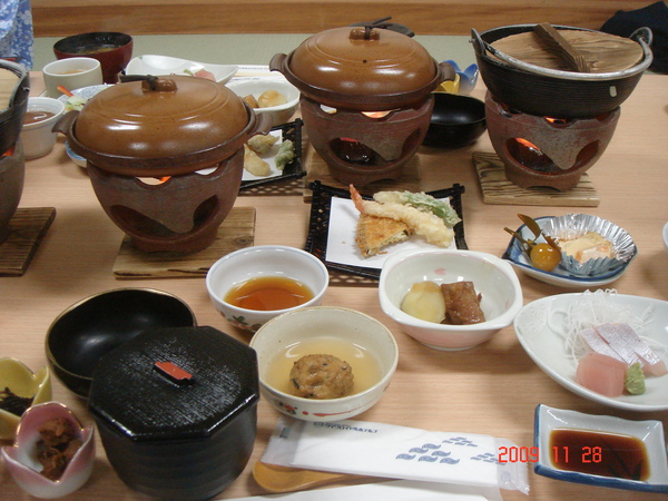 抵達紀州南部皇家飯店用晚餐,會席料理的特色就是擺滿了整桌的菜色,但每樣都只有一點點