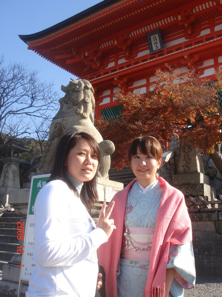 走出清水寺時又看到ㄧ位穿著粉紅色和服的小姐,問她可否一起合照,對方