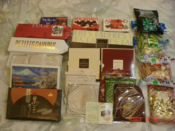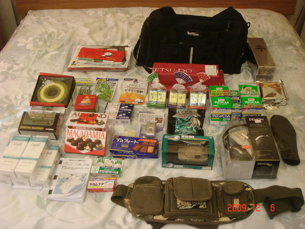 、巧克力數盒(包)、M1模型、DENON耳機、代購的保養品、腰包、實用藥品...等等