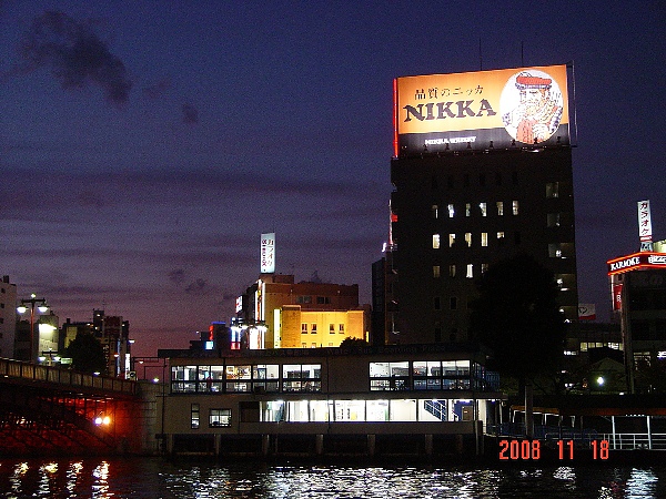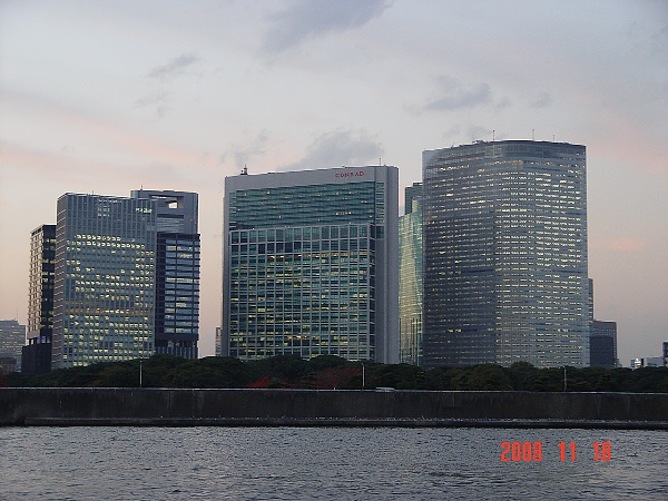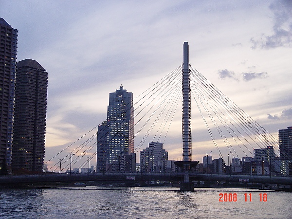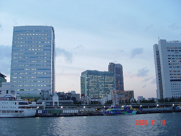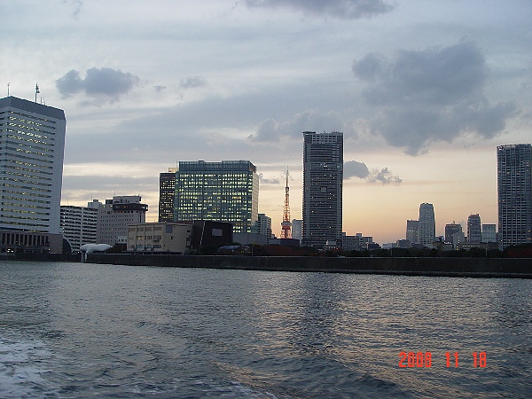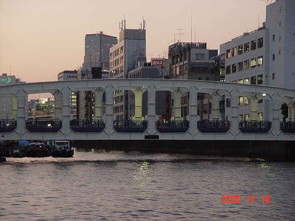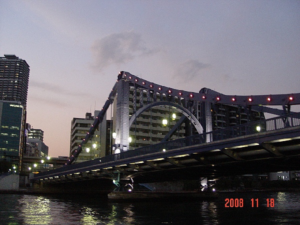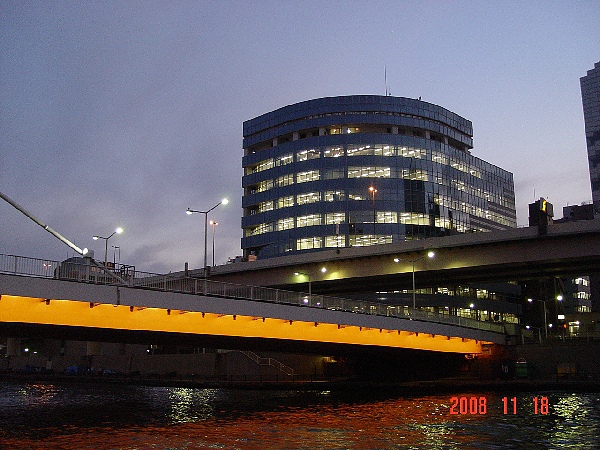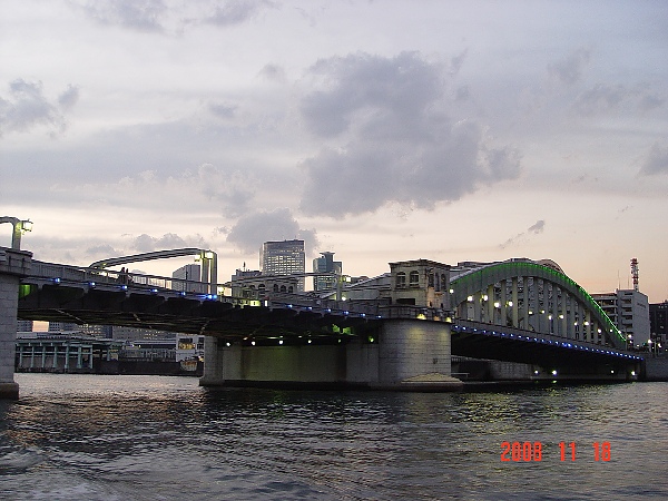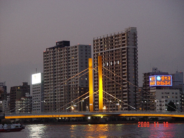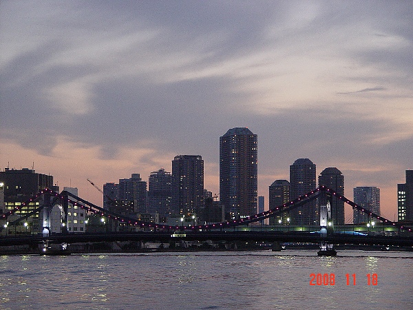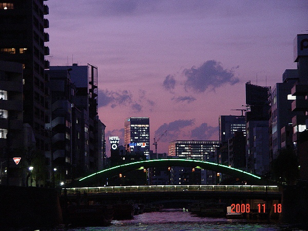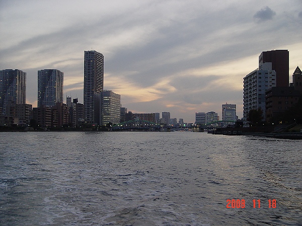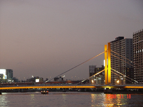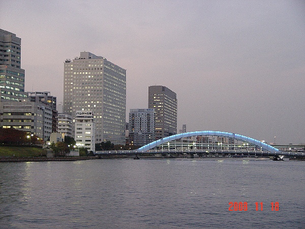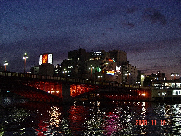 隨著天色漸漸變暗,隅田川邊的玻璃帷幕大樓也漸漸點起燈光,不知怎的,日本的建築物看起來就是很漂亮(大概是台灣的灰塵太多導致建築、道路、汽車...都蒙了一層灰的關係,奇怪! 那麼多灰塵到底都從哪兒來ㄚ?)