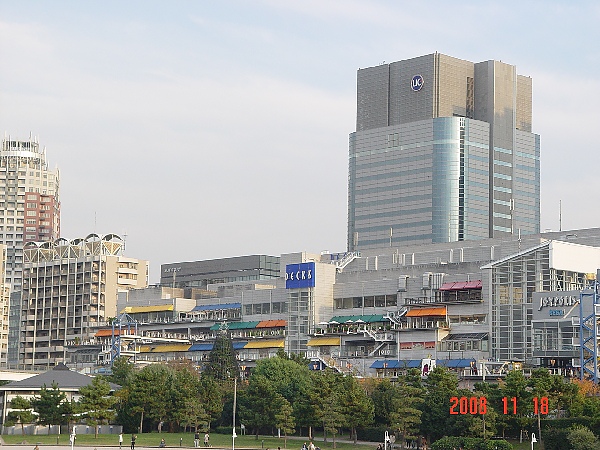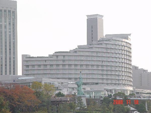 左後方有小型的自由女神像,更遠處的弧形建築物是日航東京飯店,到東京來住這兒應該也是不錯的選擇,附近景點、購物中心挺多的,在台場整整玩一天也沒問題