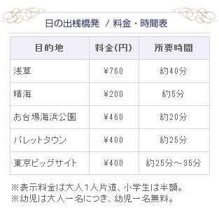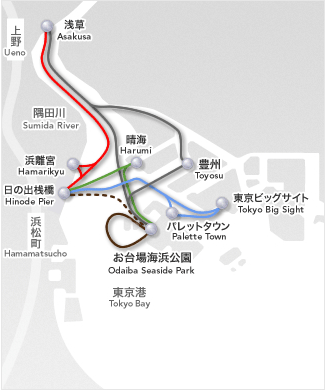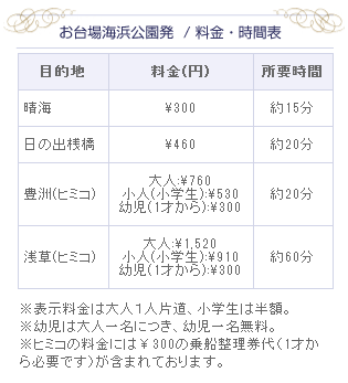 從台場海濱公園搭船至日之出棧橋約需20分鐘,價格是日幣460元