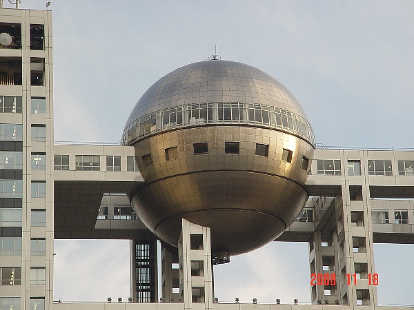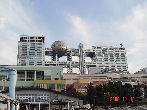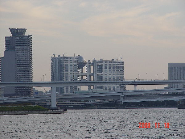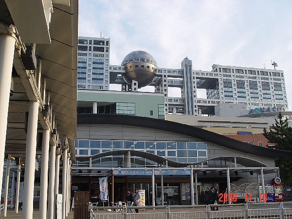 後面那棟帶球體的特殊建築物就是著名的富士電視台總部,球體本身是觀景台,電視台也開放觀光客參觀,有興趣的朋友可以上富士電視台網站看看。