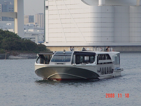 隅田川水上巴士有多種造型,這艘是佳&良即將搭乘的水上巴士,船身很低,跟大阪的船類似,估計是為了穿越橋梁而設計。