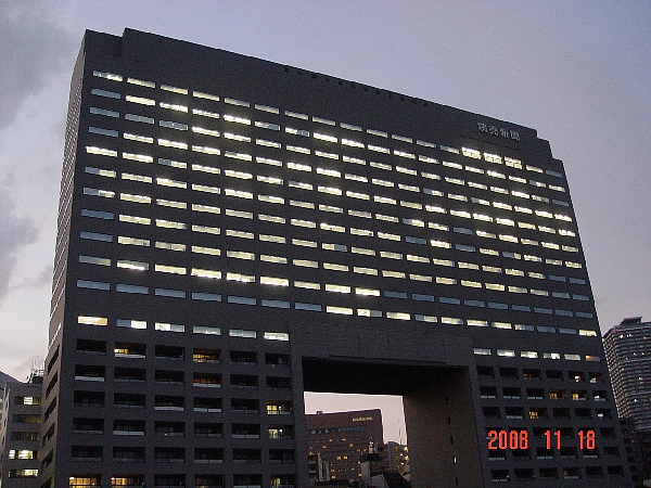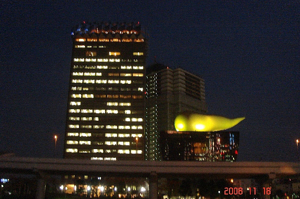 Asahi啤酒本社,上面那像火炬的造型據說是擬啤酒泡(我看比較像火炬)