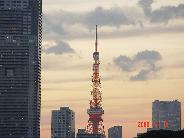東京鐵塔也從白天的紅色變成夜晚的橘紅色燈光