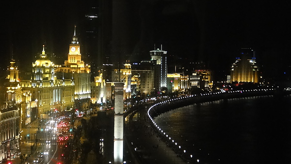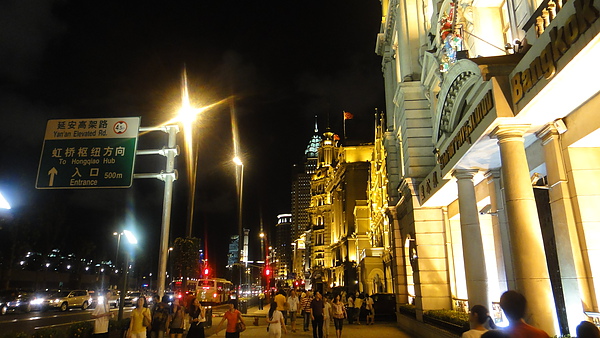 從飯店(東方商旅)房間窗戶往外灘看的夜景,真的很美,耳邊似乎縈繞著「浪奔.浪流.萬里滔滔江水永不休…」、「夜上海夜上海你是個不夜城」這兩首膾炙人口的名曲,同時望著這當年的「十里洋場」想起「滾滾長江東逝水,浪花淘盡英雄,是非成敗轉頭空,青山依舊在,幾度夕陽紅」這首詩,感嘆景物依舊,人事已非,人生苦短ㄚ