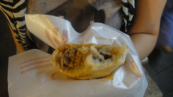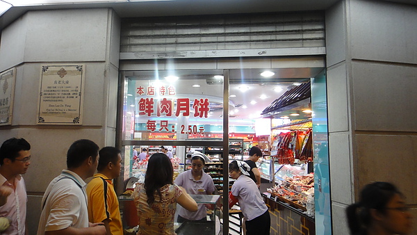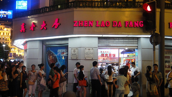 南京東路-雲南中路口的真老大房(也是百年老店),很多人在排隊買鮮肉月餅,佳也跑去湊熱鬧,買了幾個鮮肉月餅吃