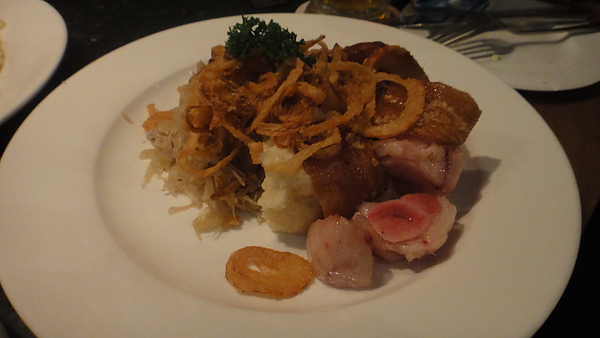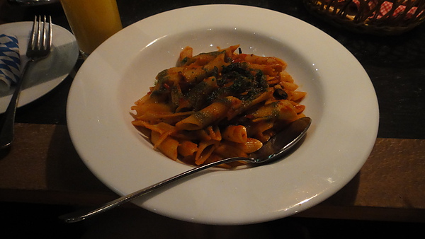ㄚ良點了份辣味通心粉,佳佳則點了德國名菜-豬腳。通心粉味道還可以,不過吃多了會有點膩,佳說這裡的豬腳不錯吃,不過這家店的消費並不便宜,最後四人吃掉YZ四千多元台幣(感謝招待!)