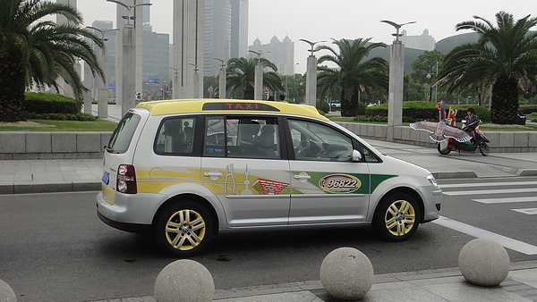 出現了! 這就是配合上海世博推出的出租車,據說是油電混合車,且有數千輛之多(上海出租車很多,不過感覺都很老舊,搭到這種車,相對舒服地多),這亞太服飾市場逛的還蠻累人的,先搭出租車回飯店休息一下好了,下午再去浦東新區的正大廣場走走