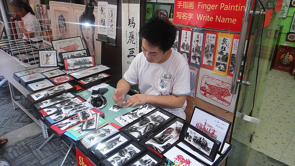 古色古香的小巷弄內藏著各式各樣的小店,有賣懷舊商品的,也有賣馬克杯的...,還有現場作畫的藝術家,令ㄚ良想起鹿港的小巷弄,雖然格調不同…