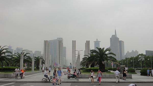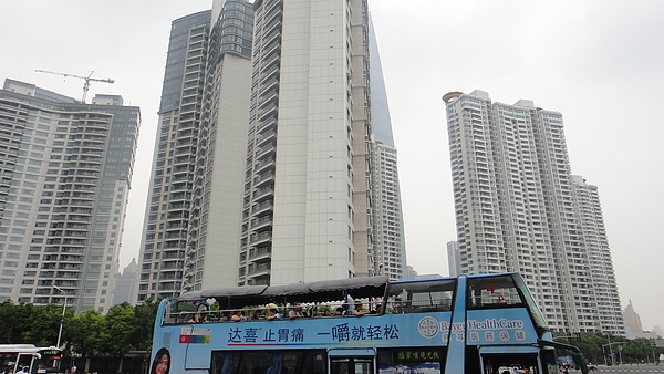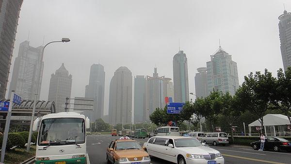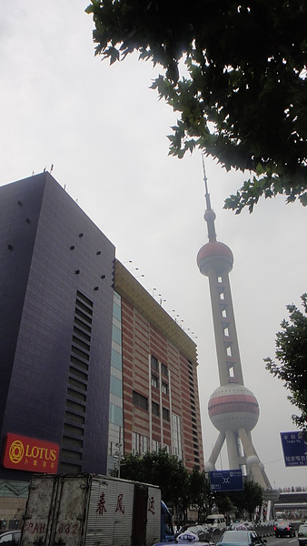 不一會就到達目的地了,一抬頭盡是高樓林立,其實這碼頭口離正大廣場及東方明珠塔還是有點距離,用走的還是得花一些時間,似乎不是很方便,為了省點力氣(後面還有8天要走),佳&良最後還是攔了部出租車前往正大廣場(結果跟直接從外灘搭出租車到浦東花的錢一樣多!沒關係!畢竟我們搭渡船只是想要嚐嚐鮮)