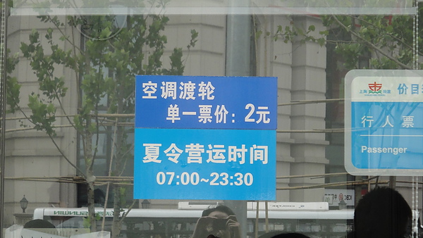 從外灘搭渡船到浦東單程票價只要RMB 2元,折合台幣約10元,很便宜