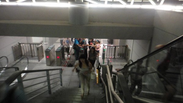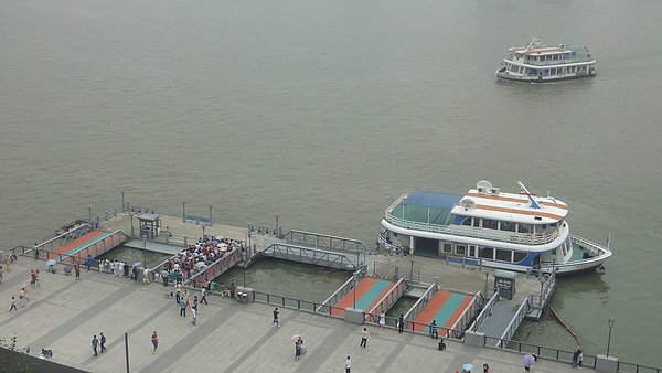 衝ㄚ! 剪票後只見一群人為了搶到好位置拼命往碼頭衝,唉這就是大陸…