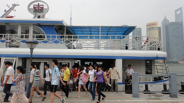 從浦東方向來的遊客們魚貫走出渡船,換我們搭囉!