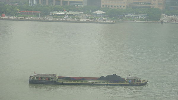 黃浦江上有很多運送物資的平底船,有時煤砂、有時木材...,在台灣看不到這種景象