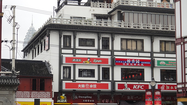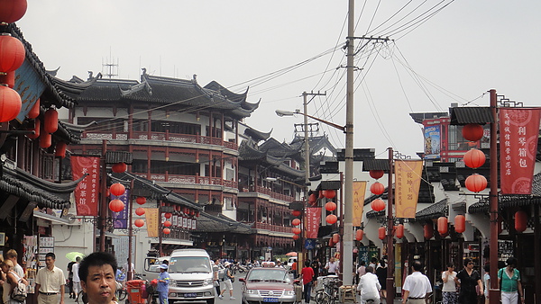 豫園周邊商店多有古味,還有懸掛舊式旗幟的茶樓,彷彿古裝電影裡面的場景