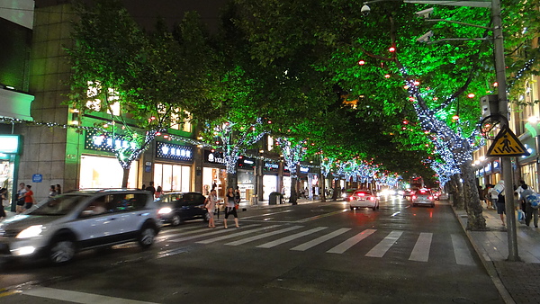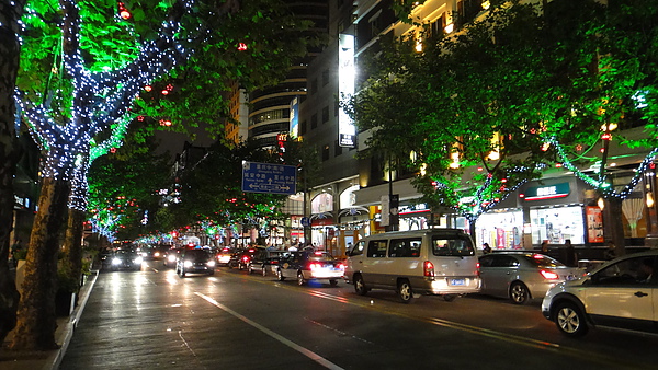 淮海中路夜間街景,沿途燈海簡直像耶誕節來臨般的誇張(剛好呼應外灘的華麗)