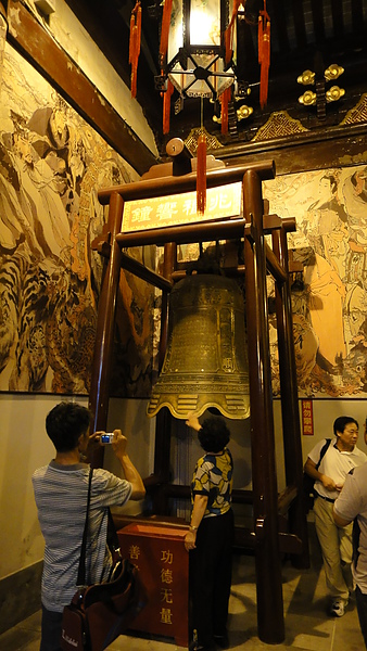 城隍殿內「兆福響鐘」,很多遊客搶著摸這口鐘,大概是祈求平安、福氣的意思吧