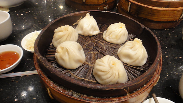 由於ㄚ良沒啥胃口的關係,我們只簡單點了幾樣菜色:招牌小籠、蟹黃灌湯蝦球、蟹黃百玉卷、群菇白玉包、金腿小粽子,還有這兒最有名的蟹黃灌湯包(得先用吸管吸湯),用完餐後,佳說她覺得這兒的東西味道不怎麼樣,我想,大概每個地方的人習慣的口味不同吧!