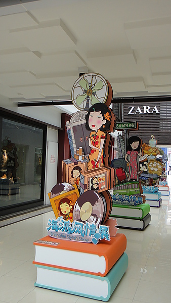 豫城時尚廣場內有可愛造型的廣告看板,有老上海的味道