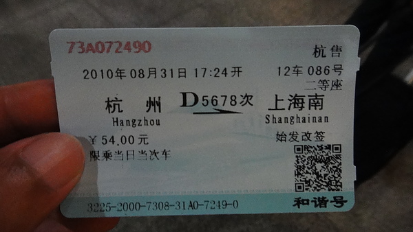 上海南站往杭州「動車」二等票,票價RMB 54元,折合台幣約254元,以車程1.5小時來說,這票價不算貴
