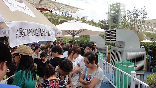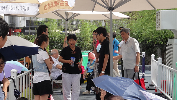 終於開放入園,ㄚ良來到安檢區前已是上午09:20了,前面大概已有數百或數千人進園區了,何況這還只是世博園區其中一處入口,看來想拿到[台灣館]預約券的機會恐怕很渺茫…([台灣館]發放預約券的時間是上午09:30及下午15:30,各發放2,000張)