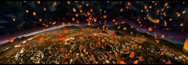 帶著人們希望的天燈冉冉升到天空、台北101、...最後影片鏡頭再度伴隨原住民歌手胡德夫的美聲緩緩拉回太空......此時,現場只剩驚嘆......