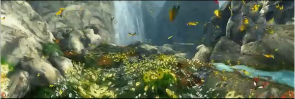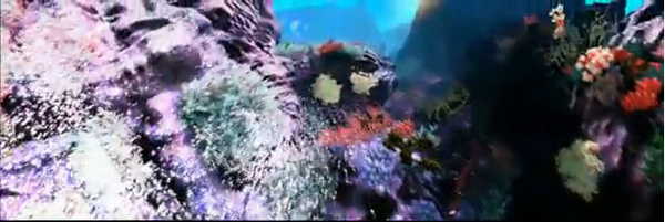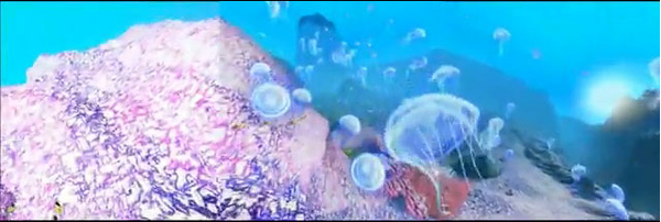 緊接著出現環抱台灣的海洋,海豚躍於其上,此時音樂轉為壯麗電影般的交響樂(還真像電影侏儸紀公園),然後鏡頭潛入海底,瞬間發現色彩繽紛的珊瑚礁、各式熱帶魚及身體發出螢光藍色的水母
