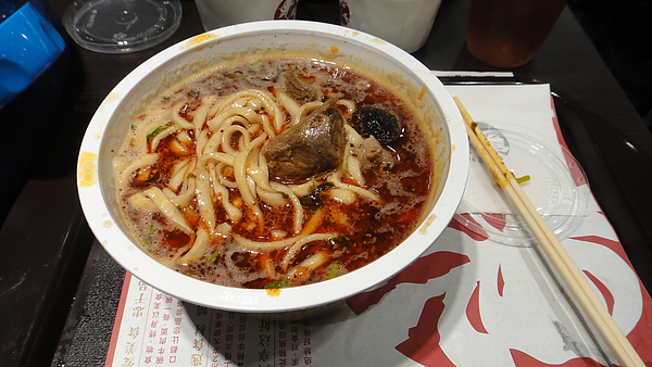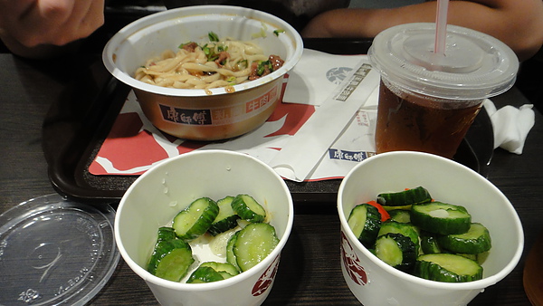 這麻辣麵挺油膩的,吃多了會覺得膩,不過麵本身味道倒還算不錯,說是套餐,其實也只是牛肉麵+小黃瓜+小杯飲料而已,消費不便宜卻也吸引這麼多人來用餐,可見近年來內地的消費能力不容小覷!