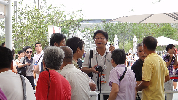 排隊認識的”四川阿嬤”,這位阿嬤是自己一個人從四川搭乘40小時火車才來到世博園區參觀的,她說她已經連續好幾天在世博園區內,並參觀了好幾個館,預計明天就要搭乘青藏鐵路轉往西藏去玩,還說前幾天園區內人潮多到她都想哭了!真可愛!也難怪,昨天(9/1)入園人數才18萬人,8/28(日)入園人數可是高達52.7萬人呢!ㄚ良一方面除了敬佩阿嬤敢在假日入園參觀的毅力與勇氣外,一方面也慶幸自己做的功課果然沒有白費時間。