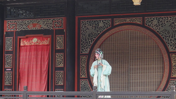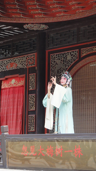 耶 有人在唱戲耶! 一個人在台上畫著濃妝,飄忽飄忽地唱著戲,說實在地,還挺嚇人的(像阿飄…呵…),不過倒是很有趣