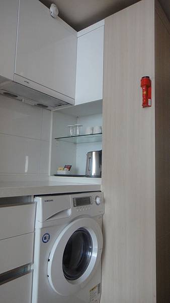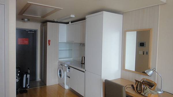 mini bar近照,特別說明的是每間房間都有洗衣機,而且是供房客免費使用的喔! 只是上面寫的都是韓文,竟然連英文對照都沒有,為了找到"烘乾"的按鈕,佳&良還特地用隨身帶來的小筆電Google翻譯了一下(Google 萬歲!)